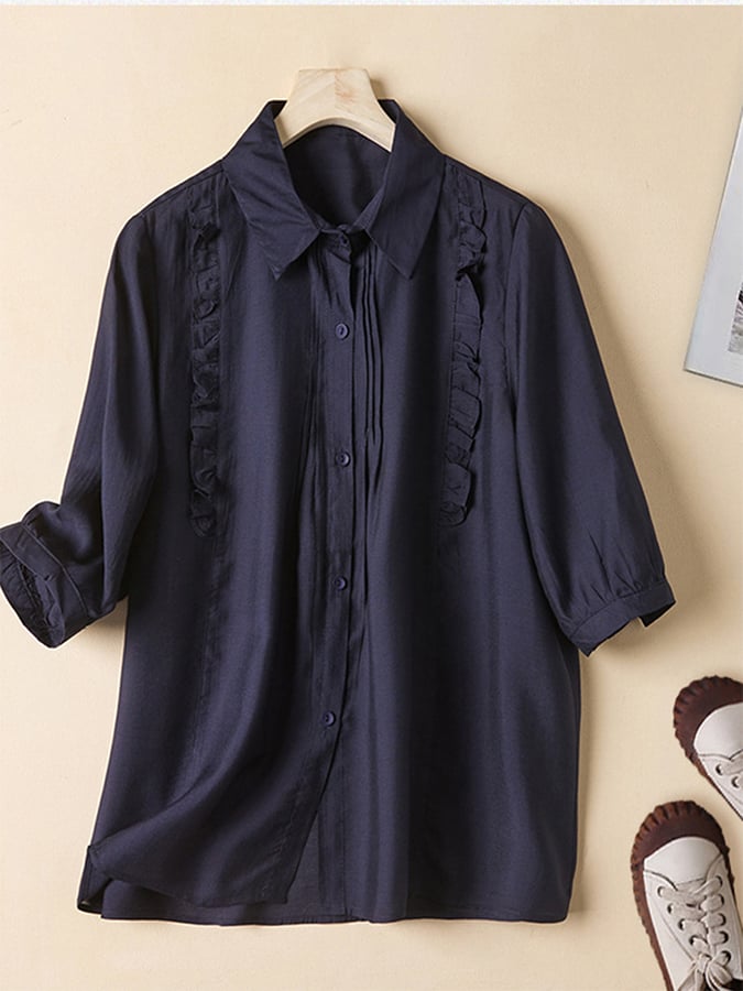 Solid Color Cotton Linen Lace Stitching Casual Shirt