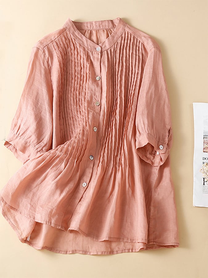 Solid Color Cotton Linen Loose Stand Collar Shirt