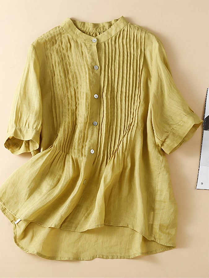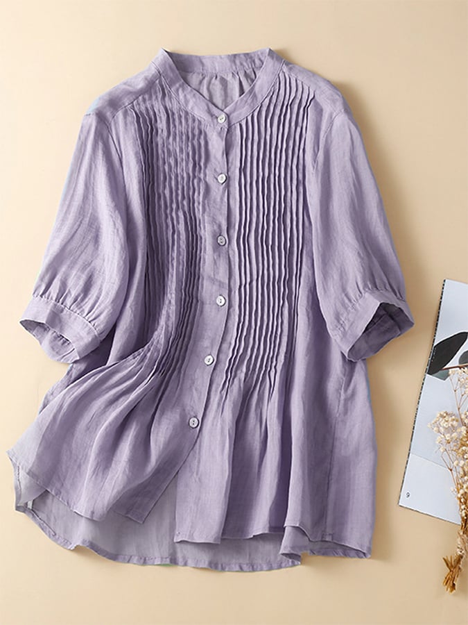 Solid Color Cotton Linen Loose Stand Collar Shirt